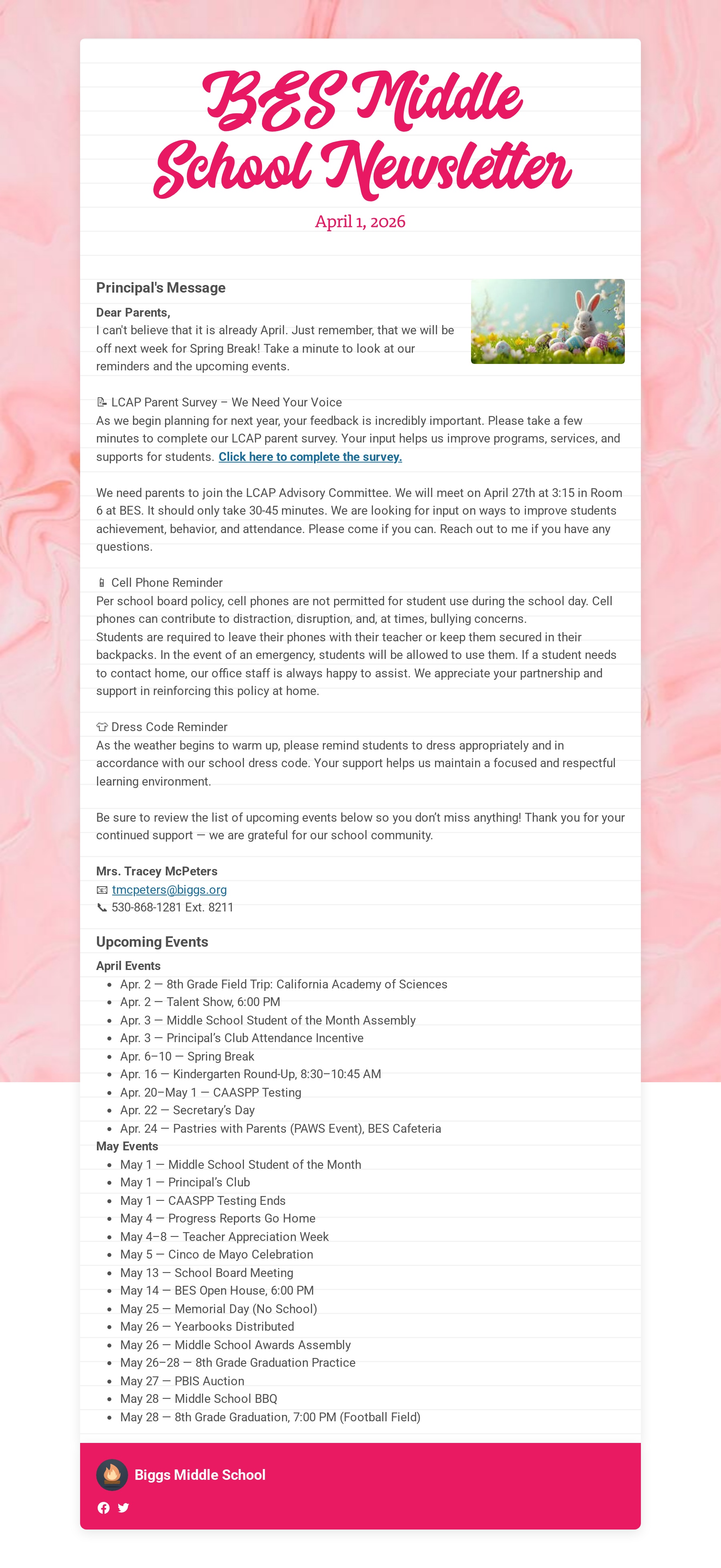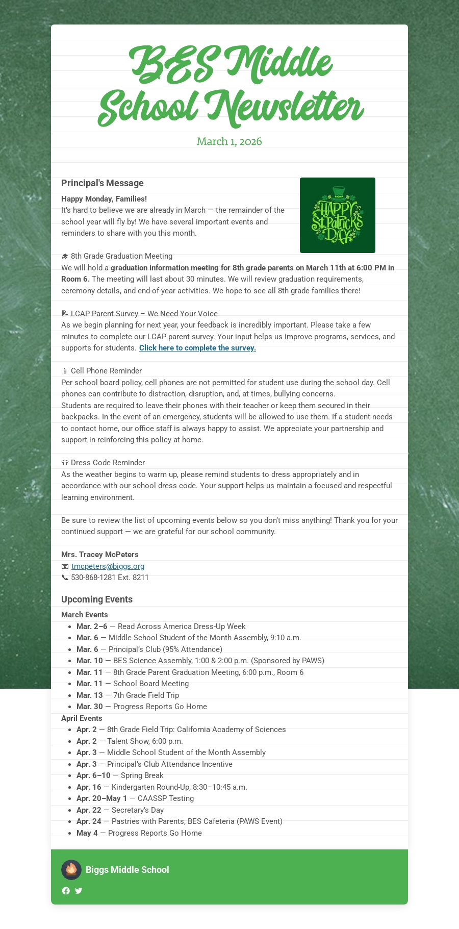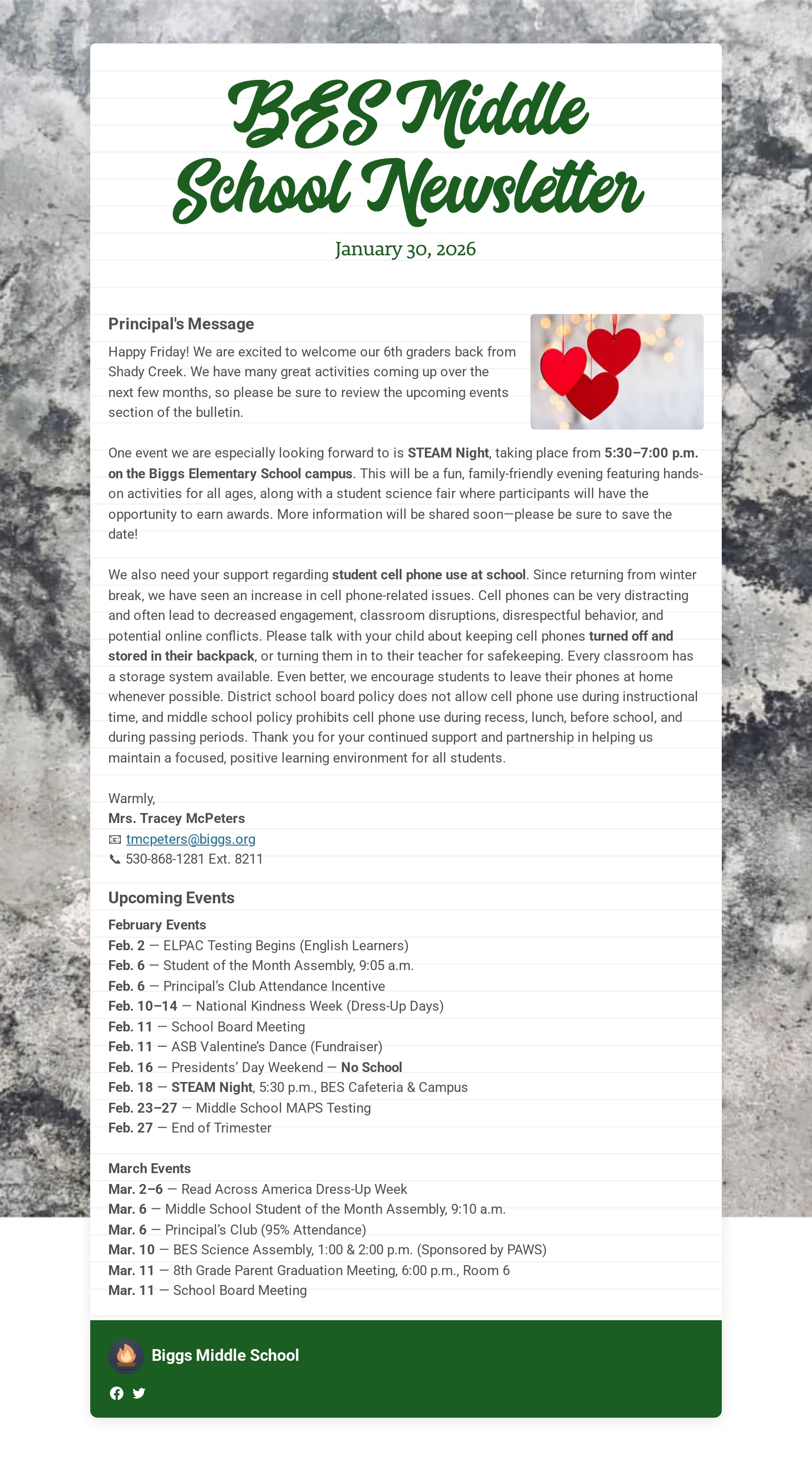 6th, 7th & 8th 8:05 am School Begins - 3:15 pm Students Out